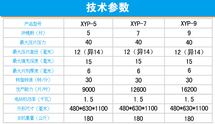 乐动手机入口生产的小型旋转式压片机有XYP-5、XYP-7、XYP-9三种规格,分别有5、7、9副冲模, |