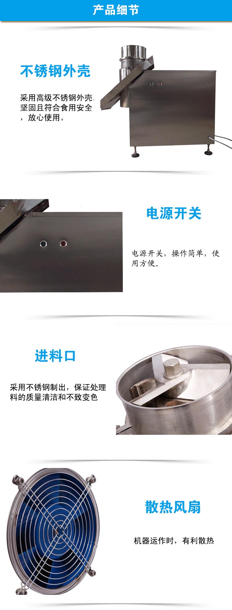 的颗粒,亦可用于将已压成块状的干粉粉成颗粒。本机操作简单,维修方便,清洗容易,自动出料。并可根